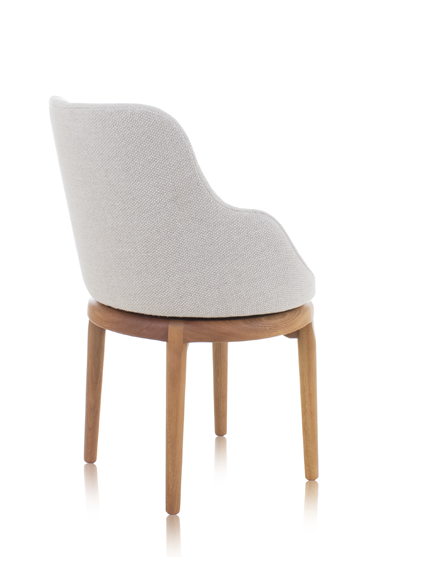 Cadeira com estrutura em madeira maciça, giratória, assento e encosto estofado com várias opçoes de tecido.